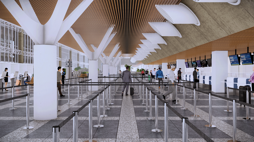 No pavimento térreo estão as operações das companhias aéreas, manuseio de bagagens, órgãos públicos e operações comerciais. As intervenções incluem melhorias na área de restituição de bagagens, aduana, duty-free e embarque remoto, além de novos sanitários e a renovação dos existentes conforme normas de acessibilidade.